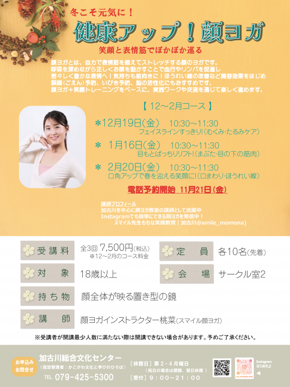 - 10月~3月 全12回 ¥21,600(¥1,800/回)
