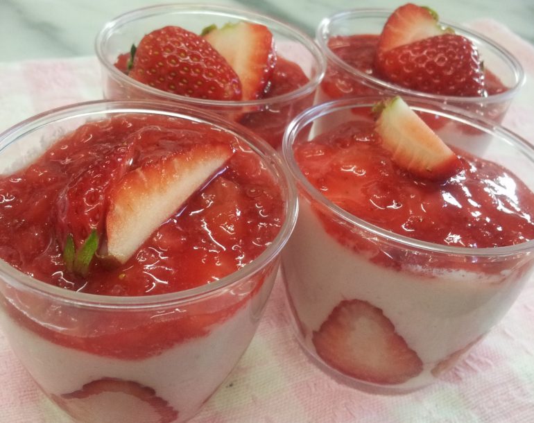 レアチーズケーキいちごソース添え