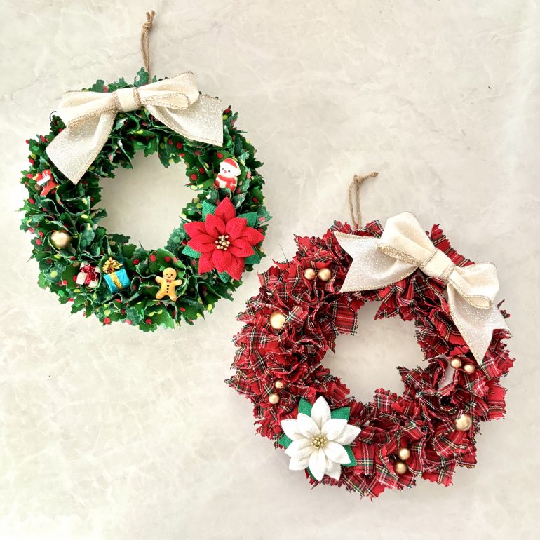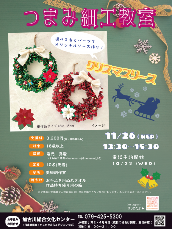 内容:つまみ細工で作る『クリスマスリース』 ※布とパーツは選べます